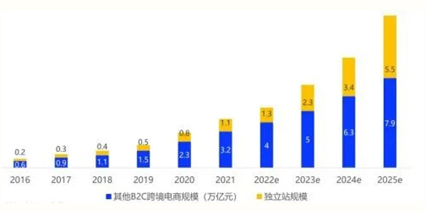 (图为:2016-2025独立站市场规模)